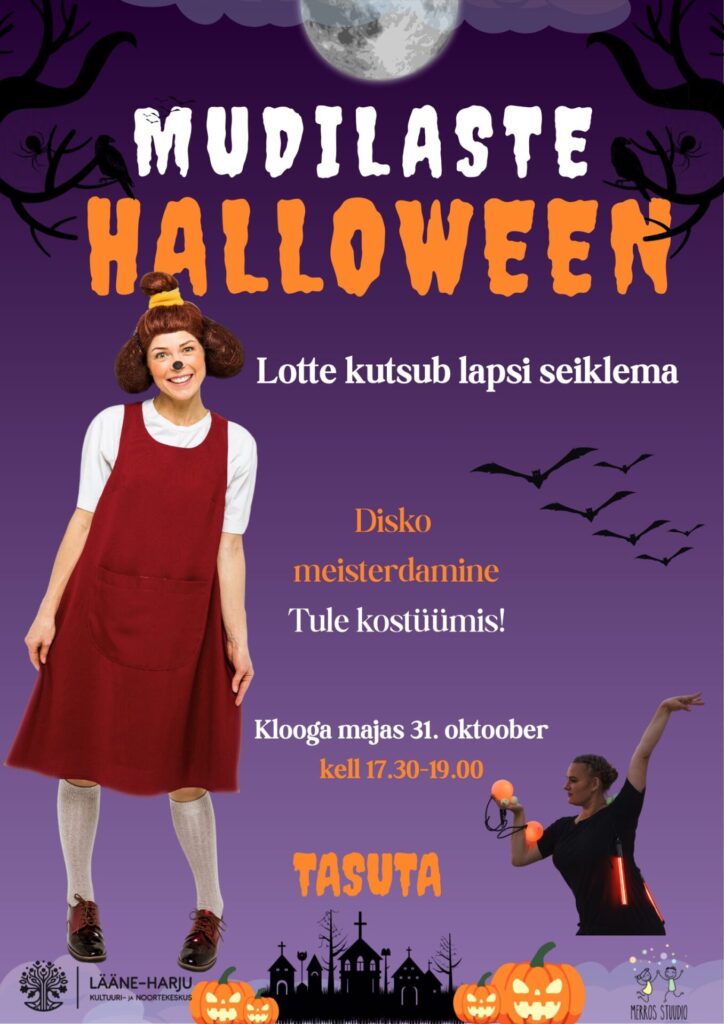 Mudilaste Halloweeni pidu Klooga majas 31.oktoober algusega kell 17:30